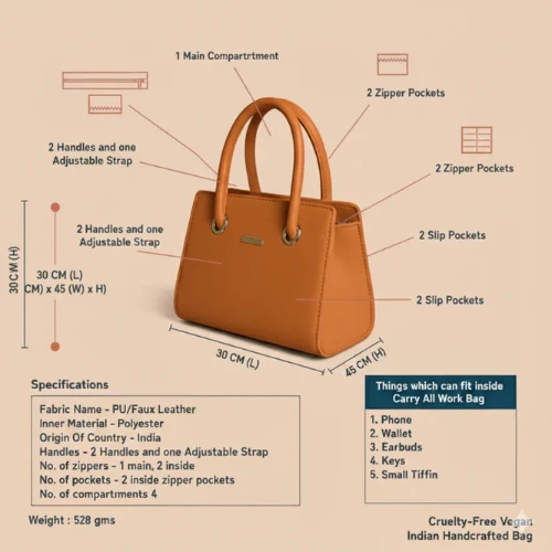 Its spacious interior and lightweight build make it an ideal choice for office, shopping, brunches, and travel. The rich caramel brown shade complements both casual and formal outfits, making this bag a must-have for every wardrobe.