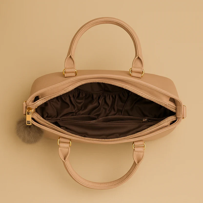 - Spacious main compartment for essentials like laptop, wallet, and makeup