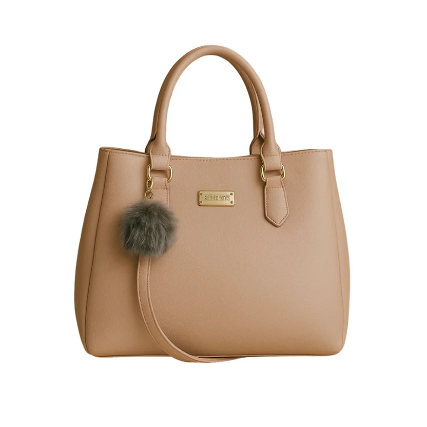 Enhance any outfit with the Mocha Charm Brown Structured Tote—an elegant handbag crafted from premium brown faux leather and adorned with a plush fur charm. Designed for versatility, this tote features sturdy double handles, a spacious main compartment, and an easy-access sling strap to keep essentials securely organized throughout the day. From work to weekends, its rich brown color and sophisticated silhouette make it a timeless accessory for every occasion.