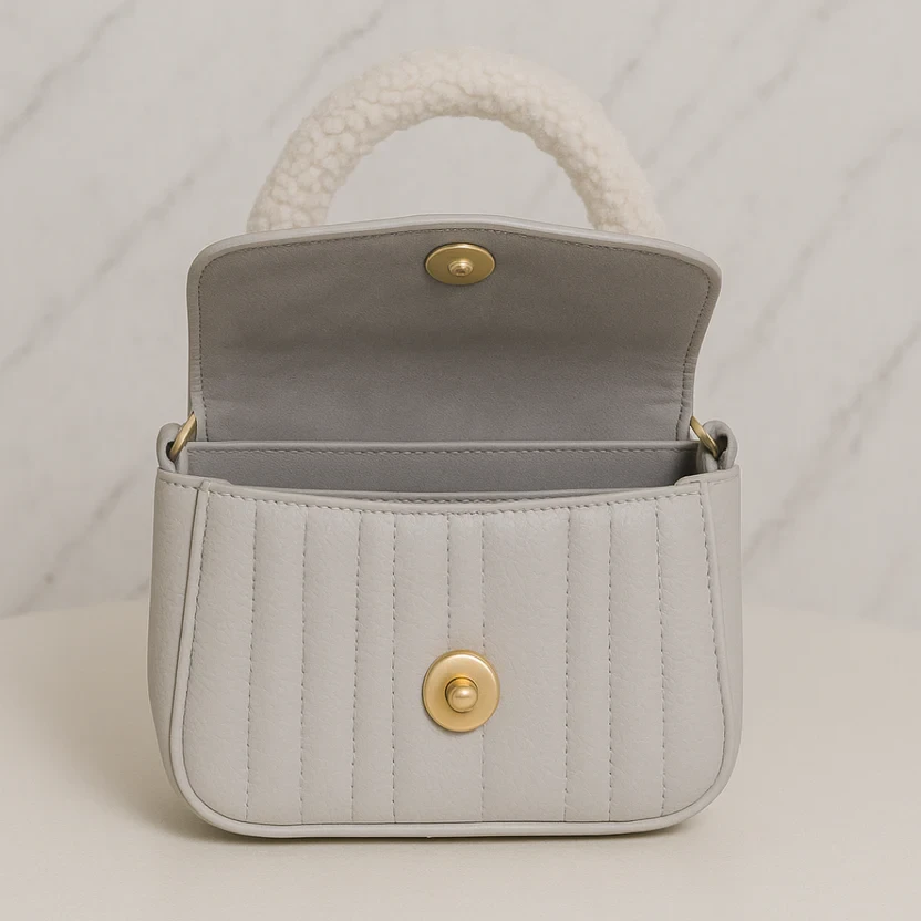 Elevate every look with the Noir Quilted Mini Handbag—a statement piece for modern, sophisticated style. Crafted from premium quilted faux leather, this chic mini purse features a plush faux fur top handle, adding a luxe winter-ready touch. The sleek black exterior is accented by a gold-tone clasp for instant glamour, while its compact yet spacious interior keeps essentials organized for day or night outings.