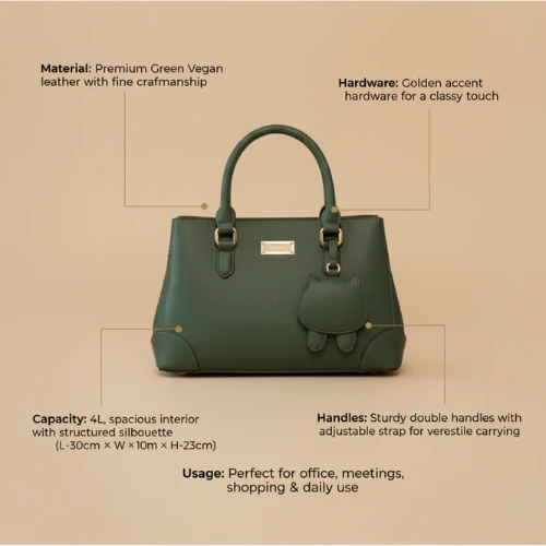- Material: Premium Green Vegan leather with fine craftsmanship